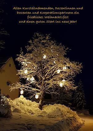 Das Team der VHS möchte Ihnen von Herzen eine wunderschöne Weihnachtszeit und einen entspannten Start ins neue Jahr wünschen. Wir freuen uns darauf, auch im kommenden Jahr gemeinsam mit Ihnen zu lernen, zu lachen und zu wachsen.